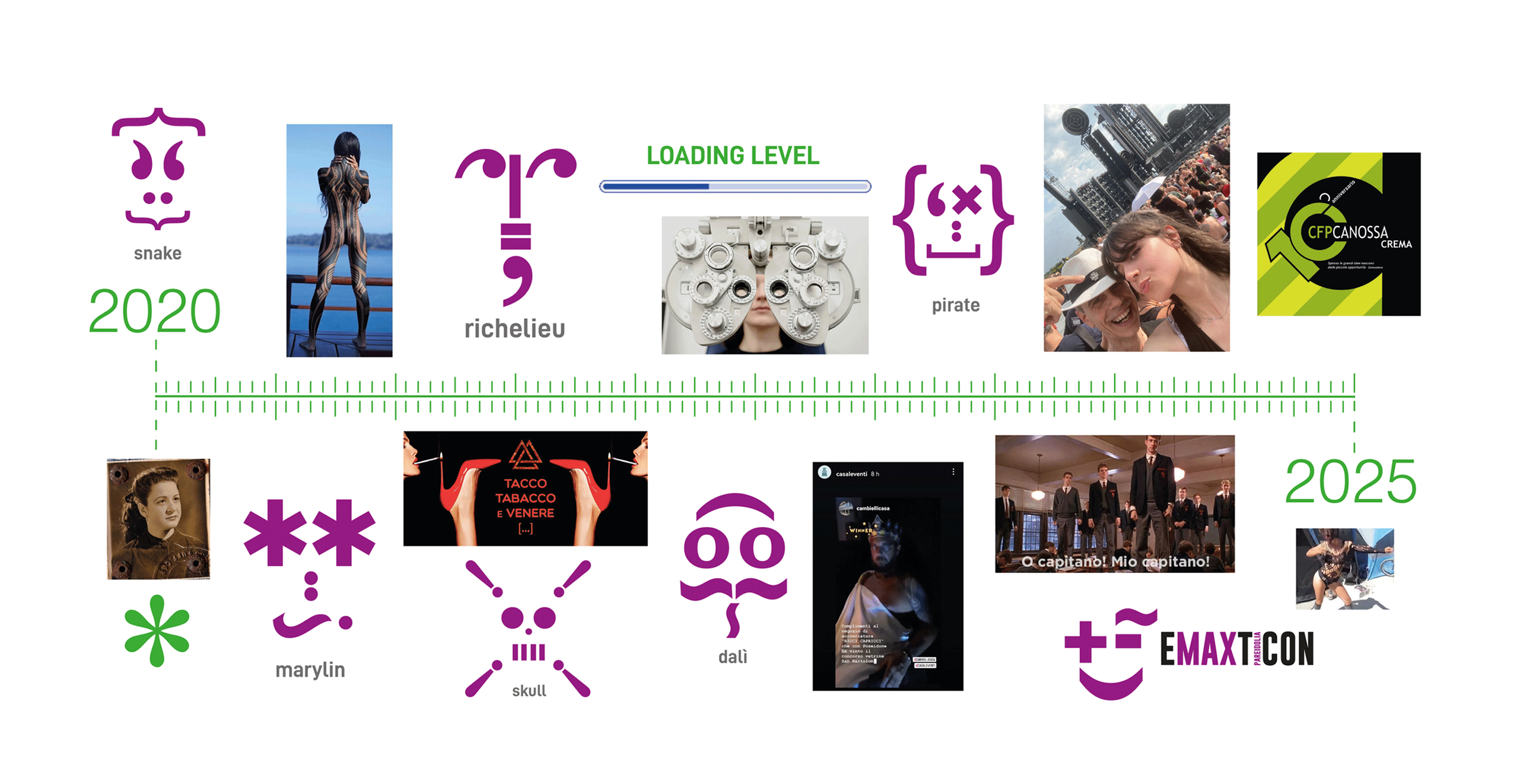 1985 ~ Tous les garçons et les filles 1988 ~ Art Runner 1990 ~ Grafico Pubblicitario e Copywriter 1991 ~ Discomagic Edizioni Discografiche 1992 ~ Colour Separation Trust 1993 ~ Pubblicista per la Free Press 1997 ~ Insegnante di Comunicazione Creativa 1998 ~ Effettonotte Cultura e Spettacolo 1999 ~ Direfarestampare 2000 ~ Logofobia 2002 ~ Studio Stilograf Pubblicità 2006 ~ Free-Lance in Agenzie e Redazioni 2007 ~ Special partnership per La Moderna 2010 ~ La Maschera Dipinta 2014 ~ On the Air 2015 ~ In Progress as Always 2016 ~ Calligrafia 2017 ~ Take the Optimism 2018 ~ Dec a Dence 2019 ~ The Sequel 2020 ~ La Carezza dell’Artiglio 2021 ~ Cult Room Tv 2022 ~ Bistyle Experience 2023 ~ Educa la Nuova Scuola 2024 ~ Start Me App 2025 ~ Relax Room 2026 ~ Artistic Intelligence |
